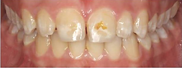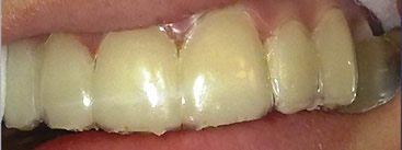 after the teeth are polished and prepared to bond the new resin material, the stent is position in place and we flow the resin through small openings in the stent.