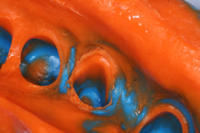 An impression (mould) is taken of your teeth using special dental "putty"generally made from silicone. The putty is placed into an impression tray; they are both then inserted into your mouth and pushed over your teeth in order to take an impression. Once the dental putty is set, the impression will be removed. An impression is also taken of the opposing teeth, so the technician can see how you bite together