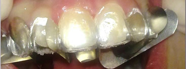 after the teeth are polished and prepared to bond the new resin material, the stent is position in place and we flow the resin through small openings in the stent.